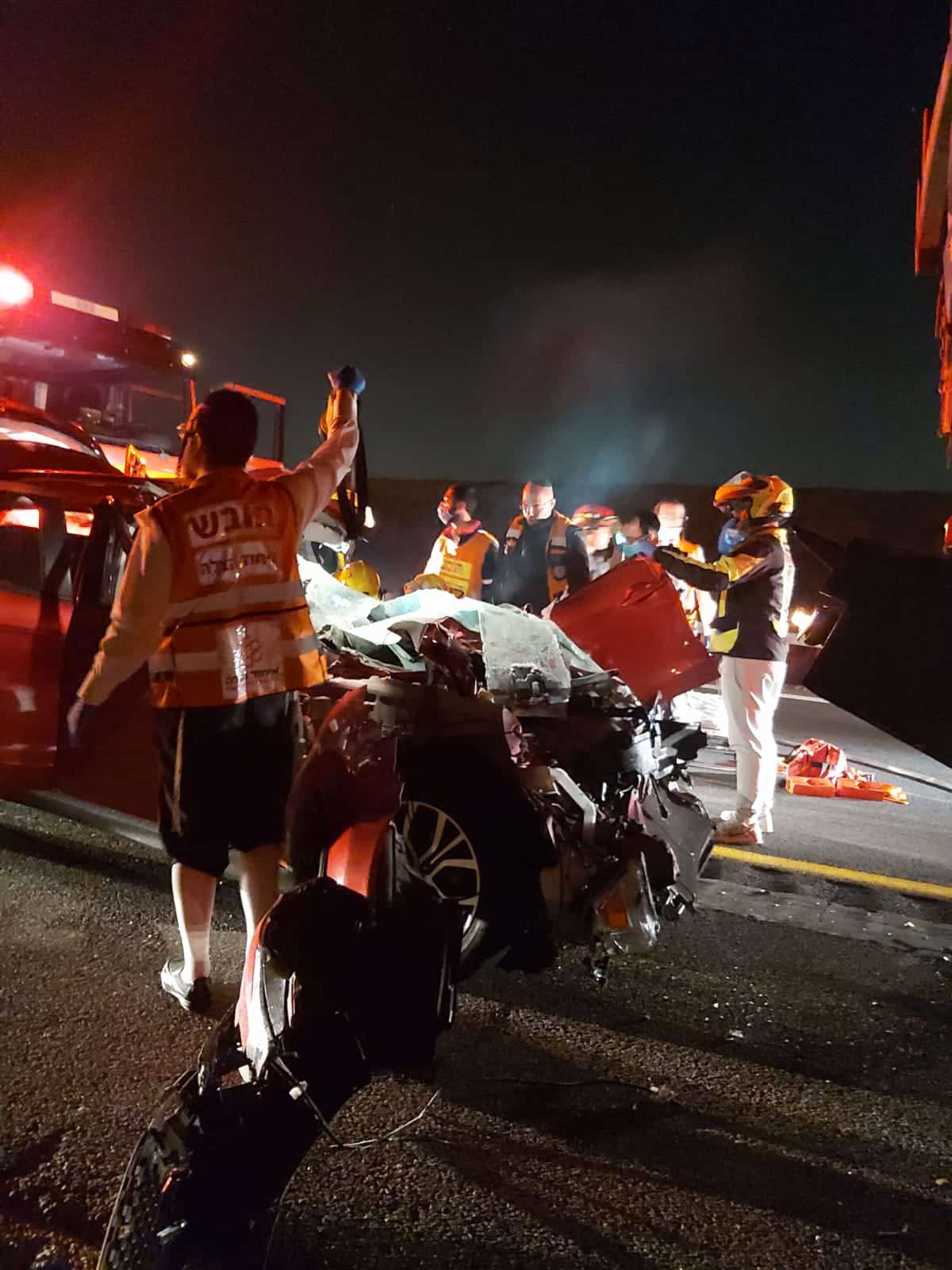 יענקי ויינברג סגן ראש סניף איחוד הצלה בקרית גת מדווח מהזירה: "מדובר בתאונה עם מעורבות רכב פרטי ומשאית. נהג הרכב שנלכד ברכבו נפצע באורח קשה. צוותי כיבוי פועלים לחלצו מהרכב ובשלב זה הוא סובל מפגיעה רב מערכתית וללא הכרה".