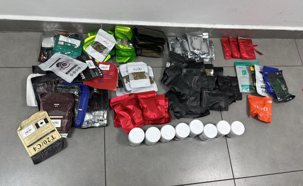 במהלך מחסום ברמת גן: שוטרים עצרו נהג שאותרו ברכבו חומרים החשודים כסם שלא לצריכה עצמית המחולקים לשקיות וקופסאות