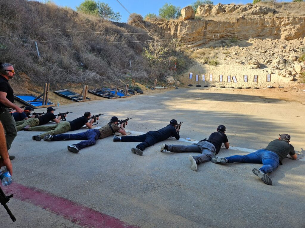 בתמונה: מתנדבי כיתת הכוננות של יבנה באימון ירי.