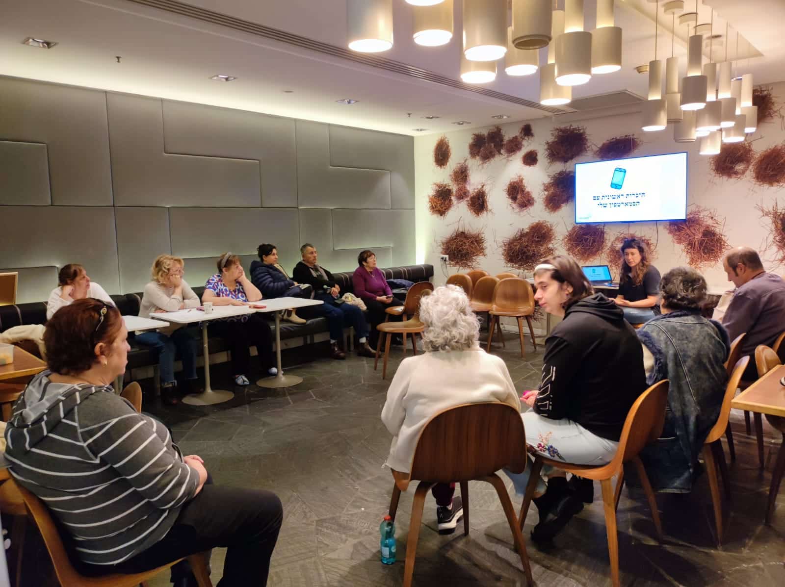 בחודשיים האחרונים, הגיעו צוותי ההדרכה של העמותה למלונות בבירה והעבירו הרצאות וסדנאות טכנולוגיות מעשיות לגיל השלישי. במסגרת הפעילות, נחשפים המשתתפים לכלים דיגיטליים פרקטיים כמו וואטסאפ, זום, יוטיוב ועוד מגוון תכנים מעניינים ומותאמים. השבוע למשל התקיימה סדרת הרצאות לשימושי יום יום בסמארטפון למפונים מקרית שמונה המתאכסנים בבמלון פרימה ורה בירושלים.