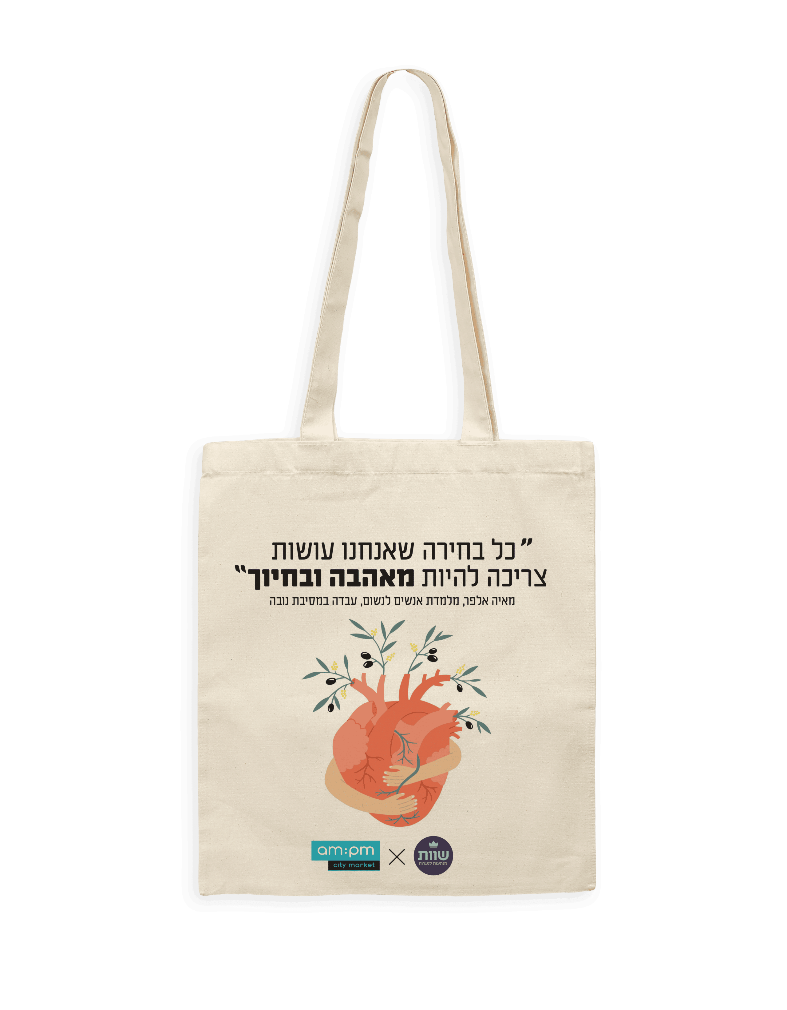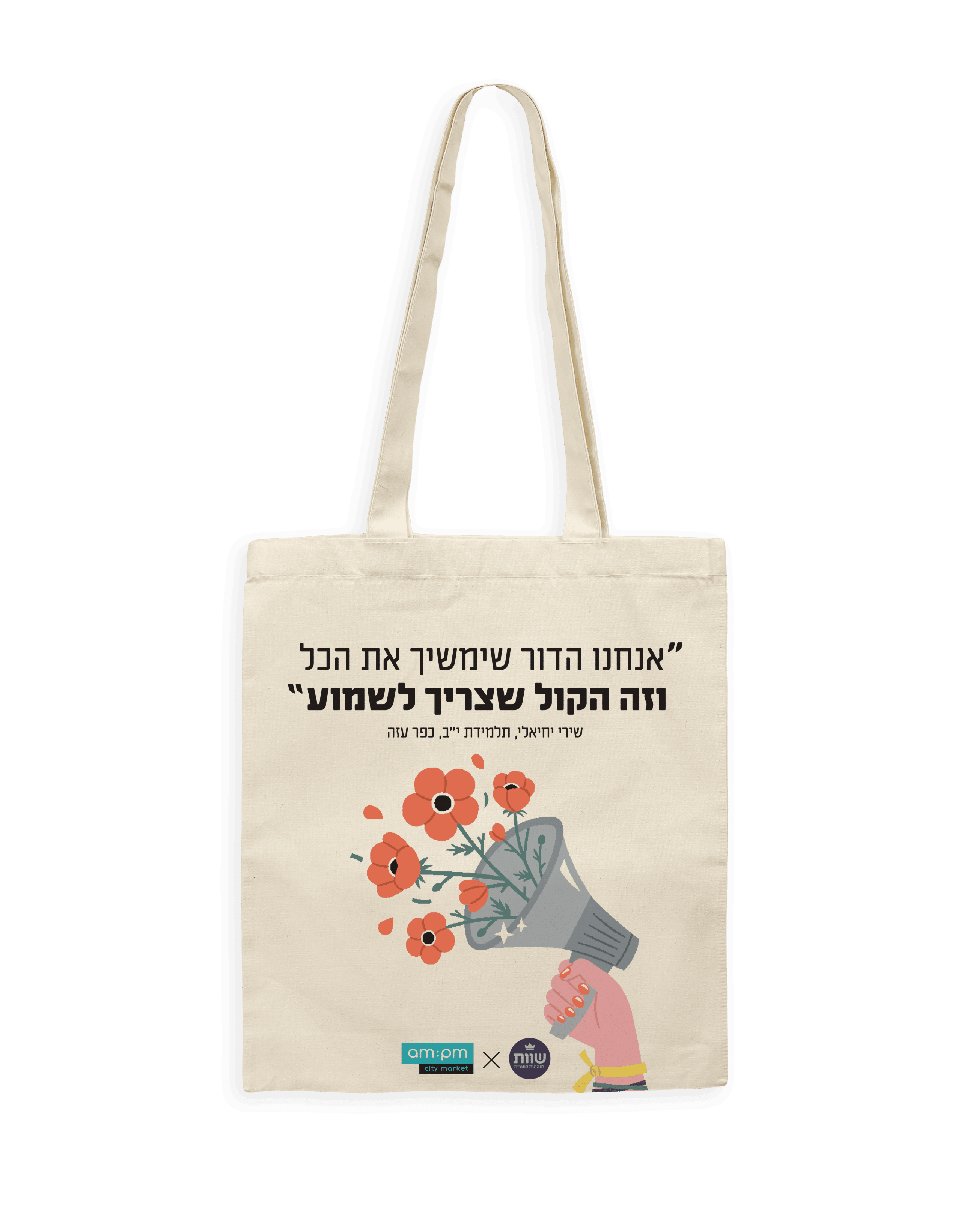 am:pm רשת סופרמרקטים אורבנית המביאה חווית קנייה צעירה ודינאמית 24/7 למעל ל-60 סניפים בפריסה ארצית מנס ציונה ועד חיפה, יוצאת בקמפיין חדש ומשיקה בשיתוף עם עמותת שוות קולקציית תיקי בד רב פעמיים שכולה העצמה נשית.