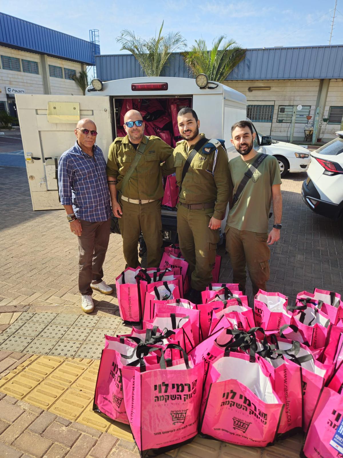גם הקהילה הצרפתית באילת בהובלה של תושבת העיר נורה ביטון, נתרמה ותרמה ברוחב לב והתלוותה בהתרגשות לחלוקה בבסיסים. גם נורה ניהלה את גיוס התרומות דרך קבוצות וואטסאפ של הקהילה הצרפתית ושלחה רשימה מפורטת של הצרכים. תוך יממה התמלא המשרד שלה בשקיות עמוסות וגם בתרומות כספיות שנשלחו מחו״ל באמצעותן נקנו עוד מוצרים. חלק מהחברים התרוצצו בין הרשתות לחפש מטענים ניידים ועוד ציוד חשוב לחיילים. כמעט כולם הגיעו אתמול לנקודת המפגש בבית רפאל, קישטו בגאווה את הרכבים בדגלי ישראל ויצאו בשיירה לכיוון הבסיסים, חיבקו חיילים בהתרגשות עד דמעות והודו על הזכות שניתנה להם לשמח חיילים. בנוסף מגיעים מידי יום מתנדבים מהקהילה למועצה הדתית כדי לארוז ולמיין חבילות שגם מיועדות לבסיסי צה"ל. חלקם בעלי דירות שכורות שנתנו את הדירות חינם לתושבי הדרום.