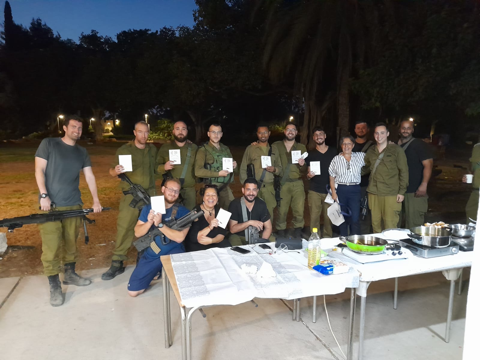 סבין חטב ועינבר ברזני מאשדוד יחד עם נציגות מהחוג לסיעוד במכללה האקדמית אשקלון ביקרו את חיילי צה"ל היקרים אי שם בדרום ועשו להם שמח.