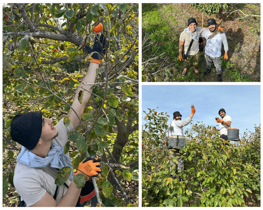 בשבוע שעבר הגיעו הסטודנטים אל משק קאשי במושב גן דרום והתנדבו לקטיף אפרסמונים. הם הלכו בפרדס, טיפסו בין העצים וקטפו את כל הפרות שיכלו כדי לסייע. אחרי שעות של עבודה פיזית לא פשוטה הביאו הסטודנטים את ארגזי האפרסמונים אל בעל המשק, יחזקאל, שהתרגש מאוד מהעזרה.