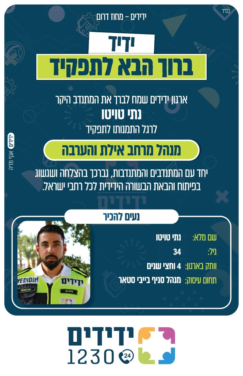 ארגון ידידים מודיע על מינויו של המתנדב היקר נתי טויטו לתפקיד מנהל מרחב אילת והערבה
