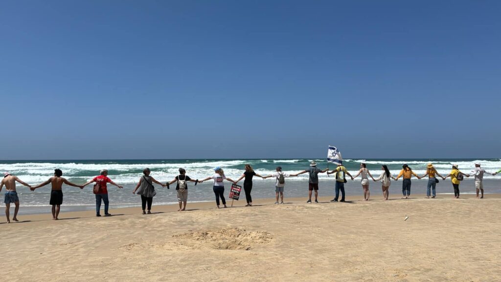 שרשרת אנושית ארוכה של עשרות תושבים שכולם מאוחדים במסר אחד חזק וברור – חייבים להחזיר את החטופים הביתה.
