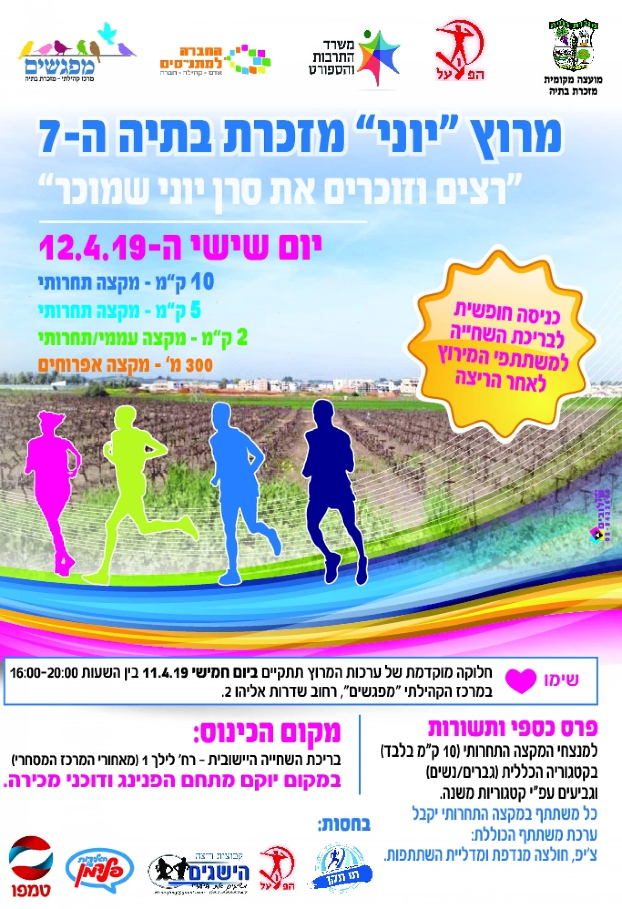 המועצה המקומית מזכרת בתיה בשיתוף מועדון "הישגים" ואיגוד האתלטיקה בישראל, מארגנים את המירוץ המתמקד בשטחים הפתוחים של המועצה וחולש על שדותיה וכרמיה המרהיבים. גם השנה המירוץ מוכר כבעל תו תקן והוא יזכה לסיוע מקצועי צמוד והכרה רשמית בתוצאותיו. מדידת מסלול המירוץ נעשית ע"י מודד מוסמך מטעם ה-AIMS.
