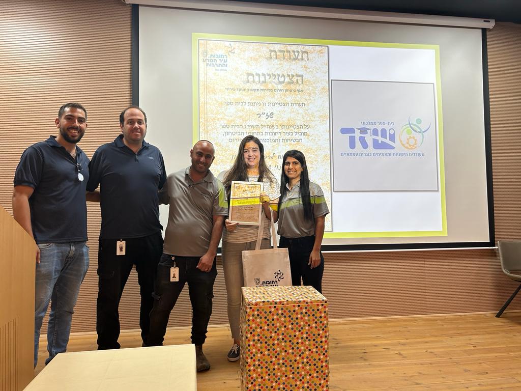 תעודת הצטיינות של אגף הביטחון והבטיחות בעיריית רחובות הוענקה לבית הספר שז"ר, זאת לאחר שהצטיין בשנה האחרונה בכל תחומי הביטחון, הבטיחות והמוכנות לחירום בשנת תשפ"ג!