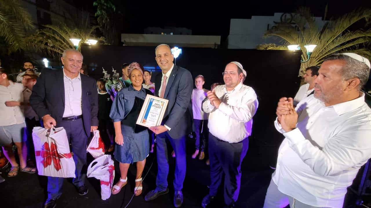 המשפחות הזוכות בשלושת המקומות הראשונים, קיבלו מראש העיר, עו"ד יאיר רביבו, תעודות הוקרה ושי במעמד חגיגות ההקפות השניות של שמחת תורה שהתקיימו בכיכר קומנדו.