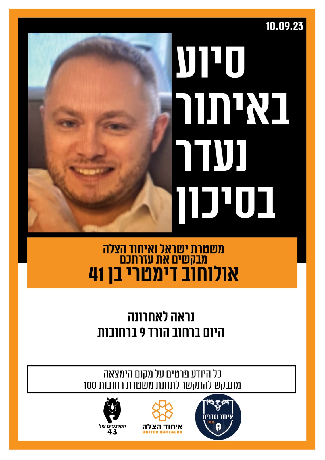 המדובר בנעדר בשם דימטרי אלוחוב בן 43 אשר נראה לאחרונה ביום שישי 8.9.23 ברחובות, ניתן אישור המשפחה לפרסם את דבר היעדרותו.