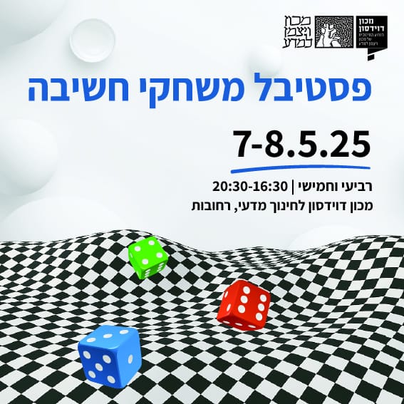 מכון דוידסון לחינוך מדעי – הזרוע החינוכית של מכון ויצמן למדע, מזמין אתכם לפסטיבל משחקי החשיבה השנתי, שיתקיים השנה יומיים ברצף בתאריכים 7-8/5, ויציע מגוון פעילויות מרתקות לכל המשפחה: פאזלים תלת-ממדיים, משחקי חשיבה ענקיים, חידות היגיון, תחרות קובייה הונגרית, חידון "שטיפת מוח" המפורסם, מופעים, סדנאות מרתקות ועוד.
