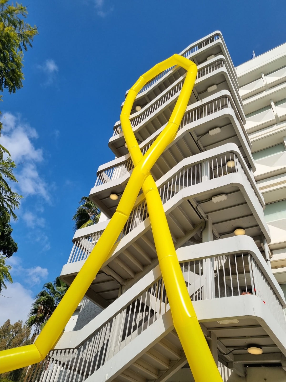 עשרות מיצגים ענקיים בדמות סמל הסרט הצהוב, העשויים משרוולי אוויר מתנפחים, של האומן דורון גזית, יוצגו היום במוסדות וארגונים גדולים בארץ וכן בעצרות למען החטופים שמקיים מטה משפחות החטופים בחו"ל