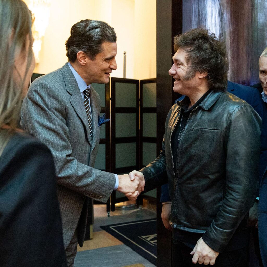תמונות של נשיא ארגנטינה, חאבייר מיליי עם תמיר קוברין, מנכ"ל מלון המלך דוד ירושלים עם הגיעו למלון.