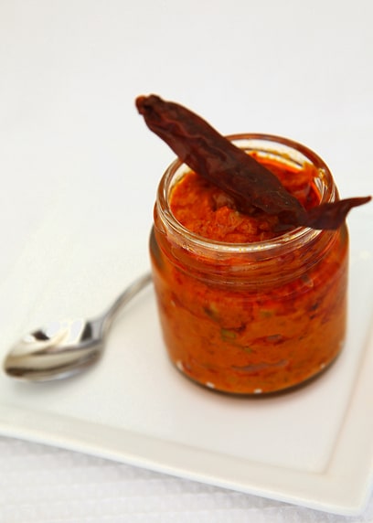 משרים פלפלים מתוקים יבשים במים פושרים כחצי שעה ומסננים. מורידים את הראשים ומשאירים עם הגרעינים. טוחנים את הפלפלים עם השום, גרגרי ועלי הכוסברה, במטחנת בשר עם חורים גדולים. מוסיפים למחית את התבלינים, מיץ הלימון והחומץ ומערבבים למרקם אחיד. אם אין מטחנה, אפשר להכין במעבד מזון, אבל המרקם יהיה שונה ויותר מחיתי. מעבירים לצנצנת ומכסים בשכבה יפה של שמן. מקפידים להשלים בשמן אחרי כל שימוש, כדי למנוע קלקול. שומרים במקרר במצב אופטימלי 3 שבועות לפחות.
