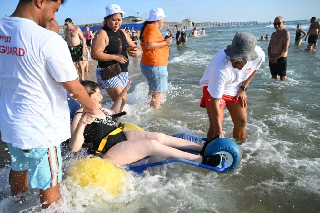 כמו כן, הילדים והבוגרים נכנסו למים בזכות עגלות נכים ייחודיות ובעזרת מצילים ועוזרי מציל של אגף חופים ואגמים, ובני נוער ממרכז הנוער "גלים" שעברו הכשרה מיוחדת כעוזרי מציל.