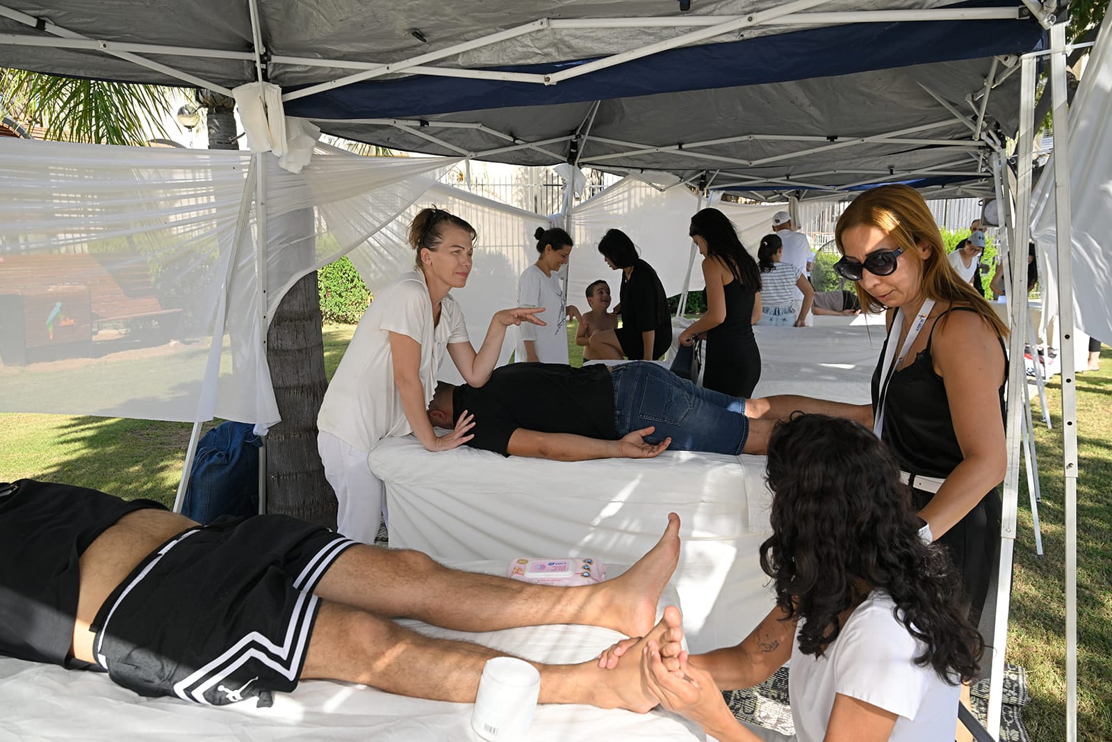 בנוסף, נהנו ההורים ממתחם טיפולים שהיה מיועד לעיסויים ולטיפולי שיאצו עם מטפלים מקצועיים. נפרסו מיטות טיפולים בהן יכלו המבוגרים לשחרר מעט לחצים ושרירים תפוסים.