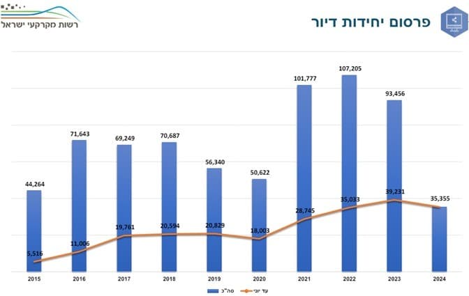 בפרסום יחידות דיור עד חודש יוני, כלומר במחצית הראשונה 2024 פורסמו 35,355 יח"ד – הסכום השני הגבוה ביותר בעשר השנים האחרונות.