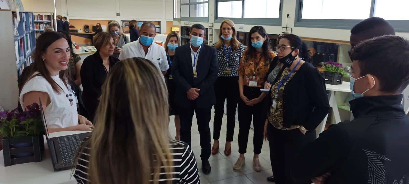 מנהלת ביה"ס דורית נדלר חלקה עם המנכ"ל וחברי הפמליה את האתגרים שהציבה הקורונה בפני צוות בית הספר ותלמידיו ואת הדרכים היצירתיות והמיוחדות להתמודדות עם אתגרים אלה. יום הביקור נחתם בסיור במרכז פסג"ה החדש ברחובות שם ארחה אותם הגב' כרמן צוקרמן אולייר, כיד המלך.
