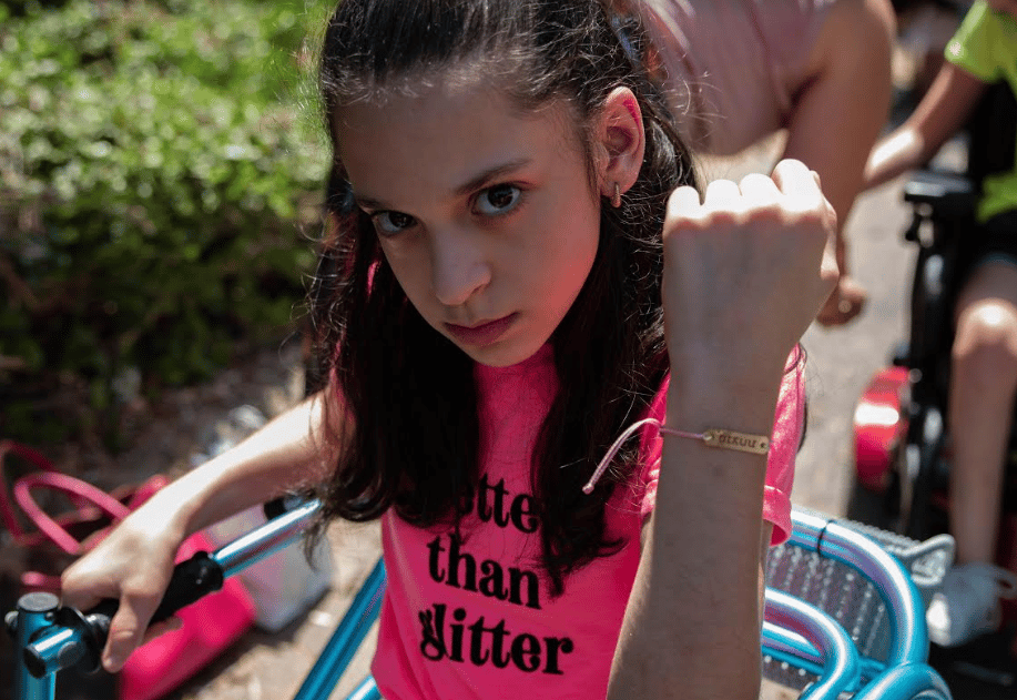 יכול/ה הכל, מנצח/ת, אהוב/ה, גיבור/ה, יצירתי/ת אלו המילים החרוטות על פלטת כסף/מצופה זהב הקשורה בחוטים צבעונים ומאפשרת לילדים לענוד מילה חיובית ומחזקת על היד. 'מנצחת וגיבורה' הן המילים שקיבלו תהל וליאל תאומות זהות בנות 11 עם שיתוק מוחין ואלו בהחלט שתי מילים שמגדירות את הילדות האלה. "החלטנו לקחת חלק בקמפיין לא בגלל שאנחנו צריכות את הפרסום" אומרת אמא שלהן, שהביאה לצילומים גם את אחותן הקטנה יהלי בת 7.5 שענדה צמיד עם המילה 'יצירתית' "הסיבה היא שחשוב לי שיראו אותן כילדות כמו כולן שמשתלבות בצילומים שלא מופרדים מילדים ללא צרכים מיוחדים ולוקחות חלק ביחד עם שאר הילדים, בגלל זה גם אחותן הצטרפה" היא מוסיפה.