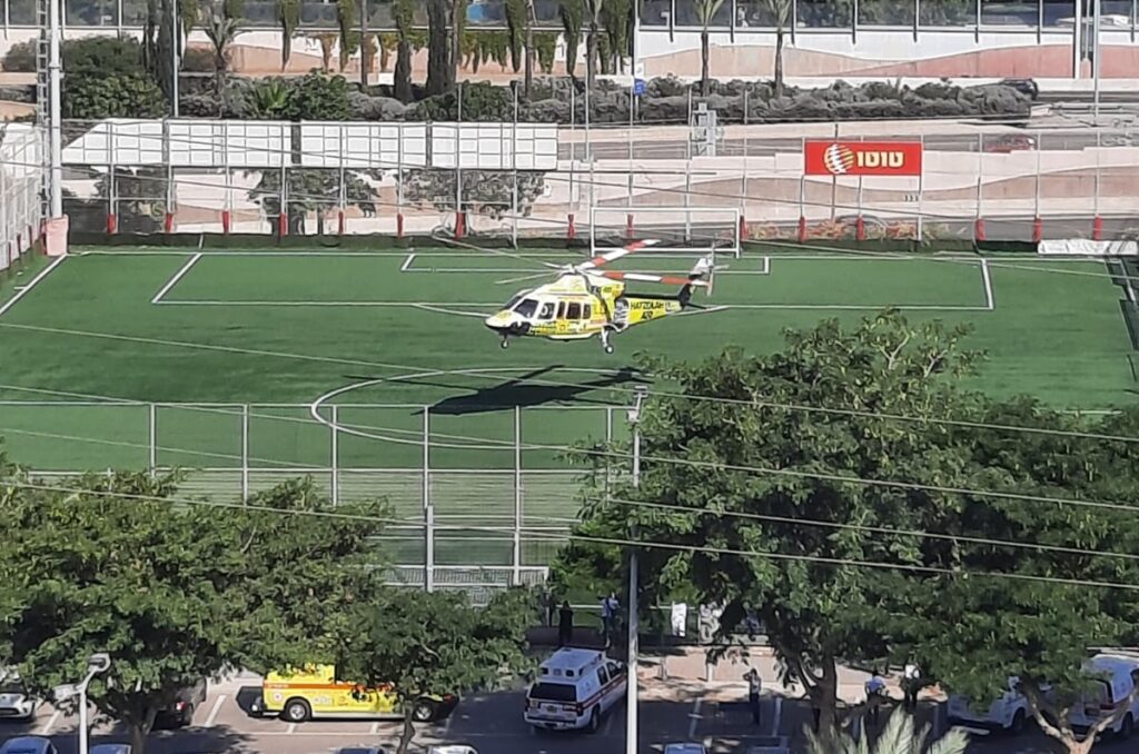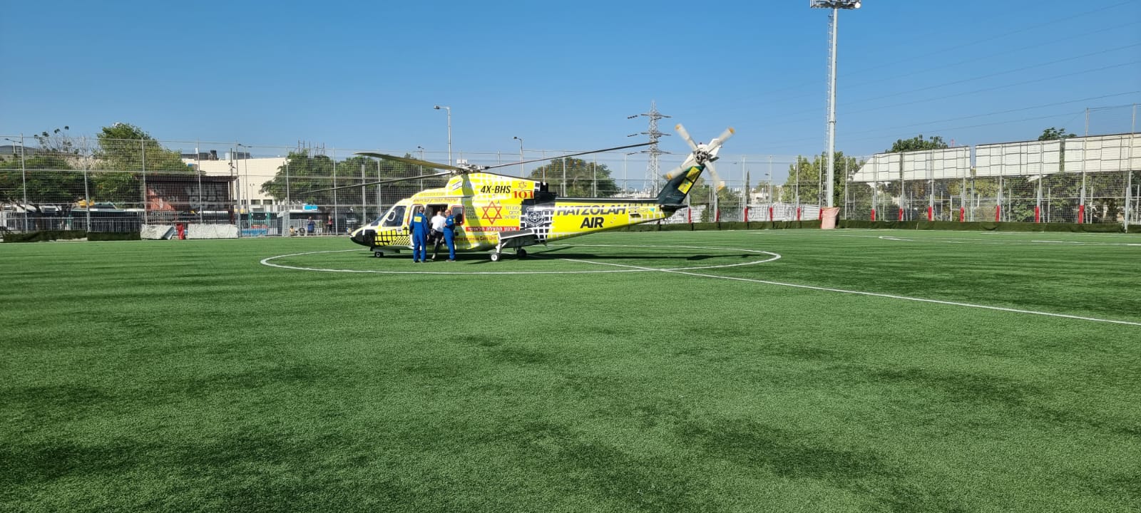 לראשונה בהיסטוריה, נחת מסוק הטיפול נמרץ של מד״א-'הצלה אייר' מדגם Sikorsky S-76, במגרשה של הפועל ת״א היום (חמישי).