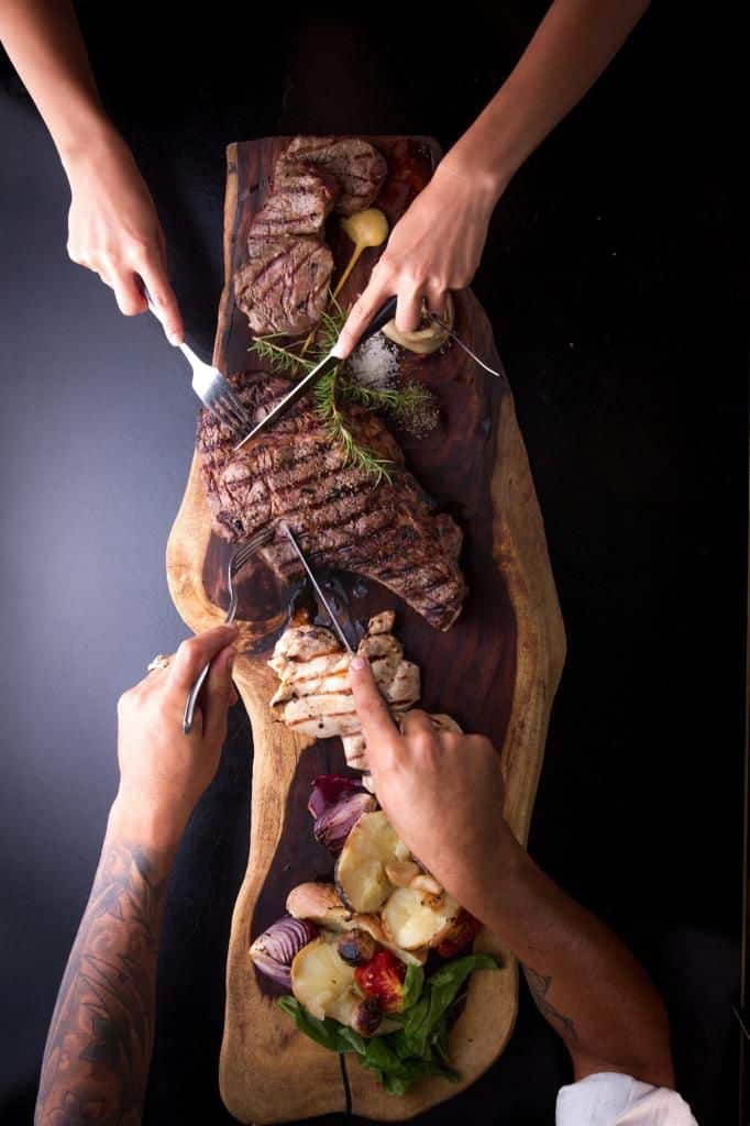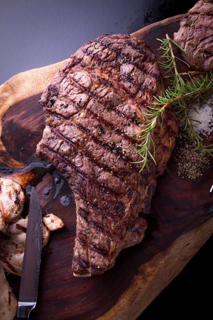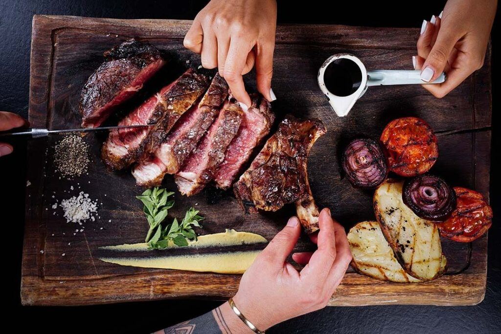 בנתחי הפרימיום: אנטריקוט על העצם (100 גרם) ב-55₪; סטייק טומהוק (100 גרם) ב-65₪, סטייק אנטריקוט אז’ול (300 גרם) מנתח קצבים מרכזי) ב-238₪; וצלעות טלה מקוצב (300 גרם) ב-218₪. הנתחים מוגשים עם קונפי שום, צ’ימיצ’ורי ורוטב יין אדום, ובליווי כוס יין הבית.