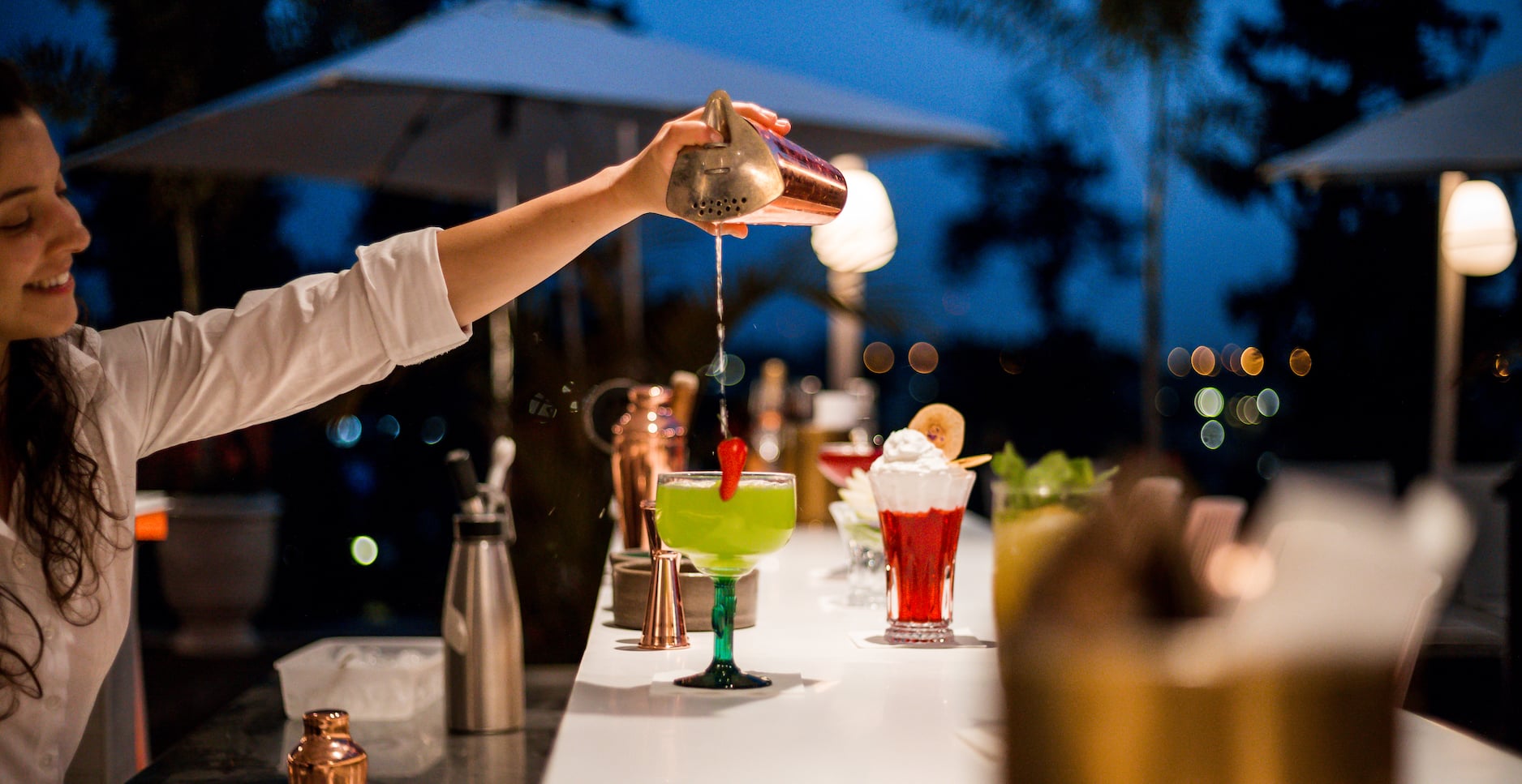 לצד המנות הקלילות על הבר הרחב לצד תפריט האלכוהול העשיר יוגשו גם קוקטיילים ייחודיים שביניהם: צ׳רי רמי, בסיס על קוקטייל רמי מרטן, תמצית דובדבני אמרנה וליקר ליצ׳י (58 שקלים) ; היי פאשן, וויסקי הייזלווד וטוניק ואלדרפלאוור (52 שקלים) ג׳ין וטימין, קוקטייל על בסיס ג׳ין, עלי טימין שרופים ותמצית פרחי אלדרפלאוור (48 שקלים)