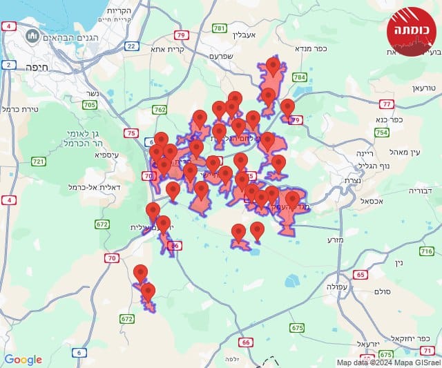 בתמונה הראשית האזורים בהם נשמע צבע אדום בשעה 0511 ואלה האזורים בהם נשמע צבע אדום בשעה 04:49 לפנות בוקר: