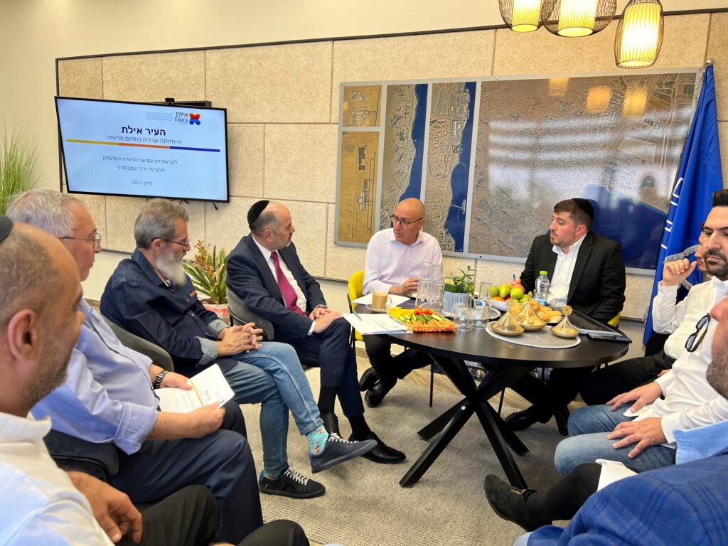 בפתח הדיון סקר ראש העירייה בפני השר את האתגרים וההזדמנויות של אילת ואת כיווני ההתפתחות שלה. ראש העירייה ציין את תשומת הלב המוקדשת לאוכלוסיית המבוגרים ולאוכלוסייה עם צרכים מיוחדים ועדכן את השר בדבר הרחבת השירותים עבור האוכלוסיות הללו כולל בית חדש שהקימה העירייה לאזרחים ותיקים, מרכז ספורט וחברה משלב לאנשים עם ובלי מוגבלות ומרכז יום טיפולי סיעודי שייבנה לצד בריכה וחווה טיפולית.