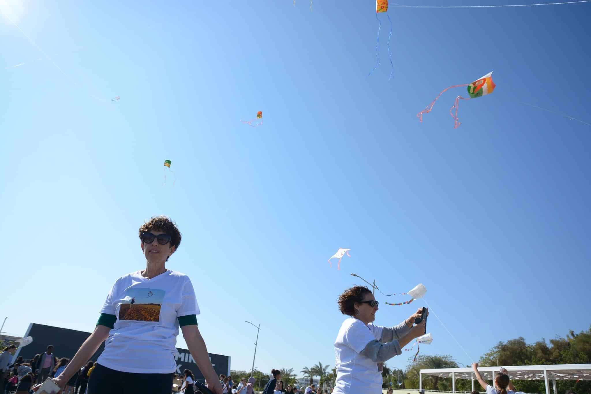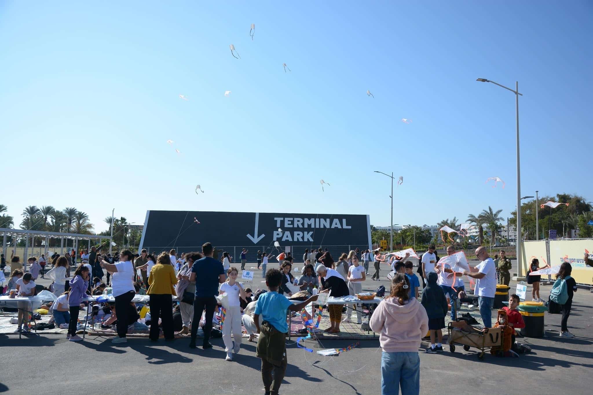 לקראת המפגש באילת הכין מרכז גי'נוגלי יחד עם אומנים מירושלים עפיפוני ענק כמחווה לילדים המפונים ולילדי אילת. במהלך האירוע הכינו הילדים 350 עפיפונים בגודל 50/35 עם מסרים (משפטי השראה, תפילה, ברכה) שהוכנו מראש עם המחנכות בכיתות. סגנית ראש עיריית אילת – עו"ד סימה נמיר הודתה למארגנים על הזכות להצטרף למיזם שמביא לידי ביטוי את התקווה והאהבה שמפיצים תושבי אילת מתחילת המלחמה וגם את שיתוף הפעולה ואת הקשר הנפלא שנרקם בין תושבי אילת הצעירים והבוגרים לבין תושבי עוטף ישראל המתארחים באילת.
