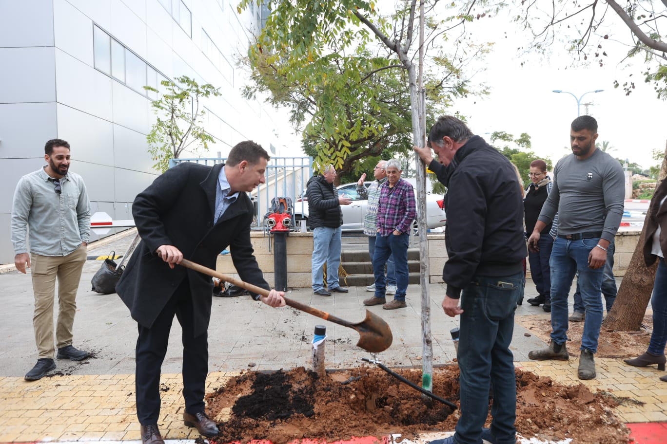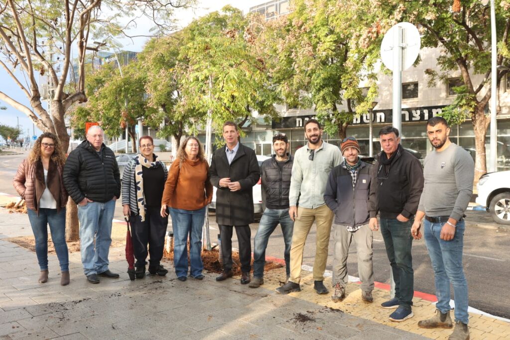 ראש העיר, יריב פישר, הגיע הבוקר לרחוב כדי לנטוע עץ, וציין בגאווה כי הרצליה נמצאת בין עשר הערים המובילות בארץ במדד ההצללה.