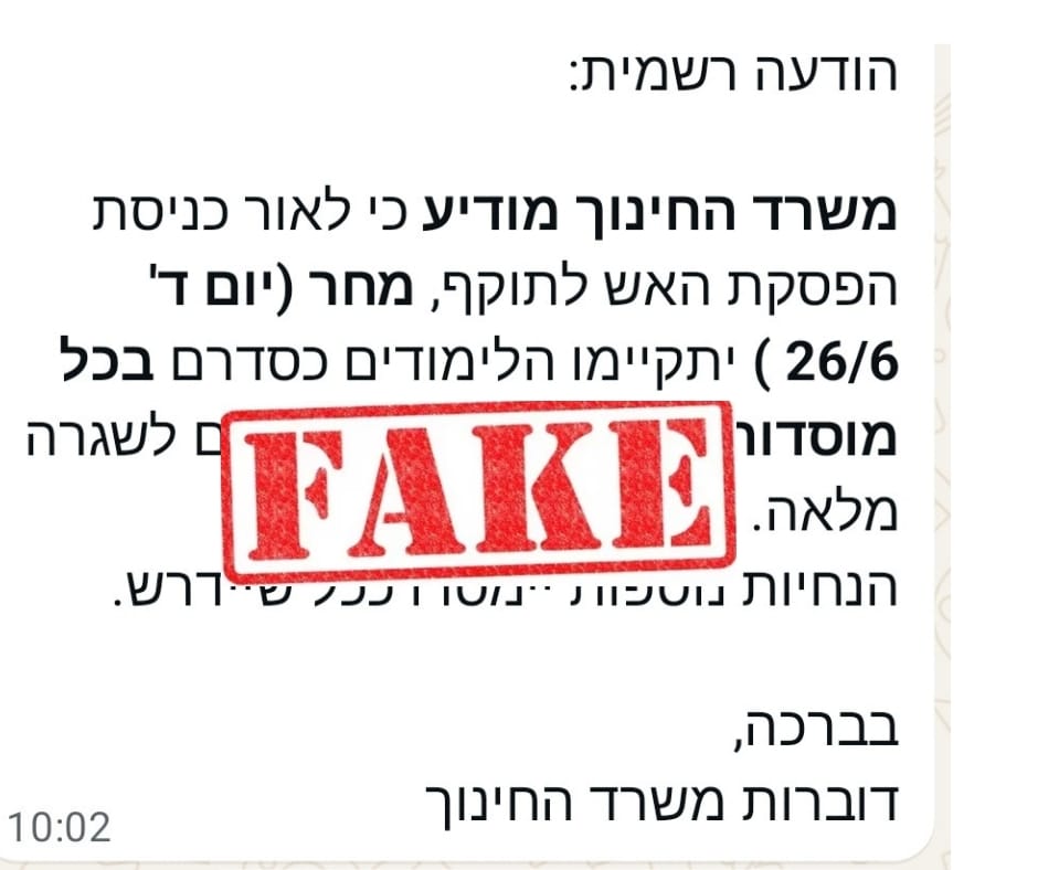בניגוד לפרסומים השונים, לא ניתנה הנחיה לפתיחת מוסדות חינוך למחר. ההחלטה כפופה לאישור פיקוד העורף והשלמת כלל בדיקות הביטחון הנדרשות במוסדות.