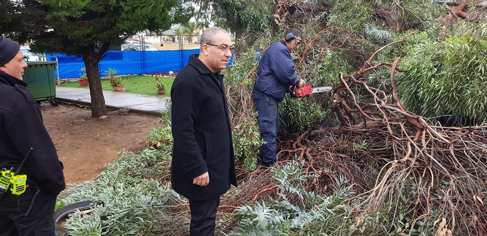 לדברי אהרון, "בשעות האחרונות נושבות רוחות חריגות בעוצמתן שהגיעו למהירות של מעל 100 קמ"ש. צוותי המועצה נמצאים בשטח בכוחות מתוגברים ומסייעים בפינוי עצים שקרסו מעוצמת הרוחות ובסיוע לתושבים".