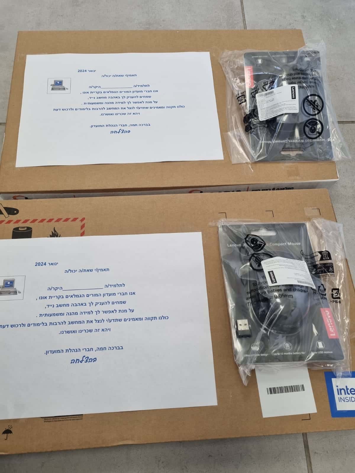 התרומה המכובדת הגיעה בדיוק בזמן המתאים, בשעה שילדים רבים נדרשים ללמוד ב"זום" ואין באפשרות הוריהם לרכוש מחשב לכל ילד.