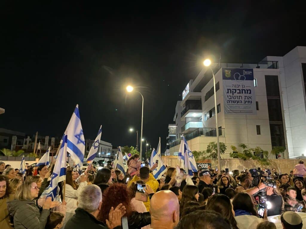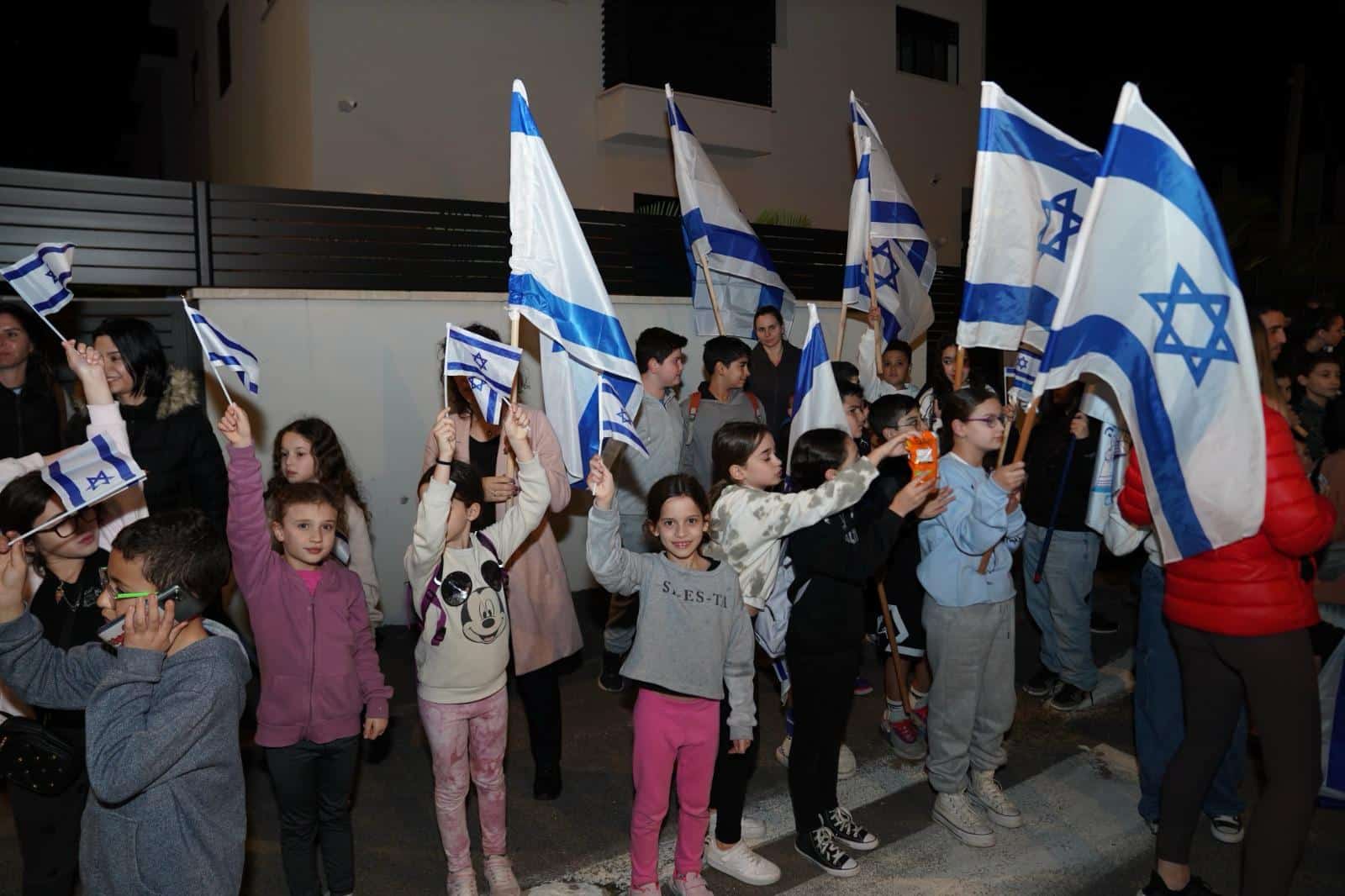 מרגש: מאות תושבי גן יבנה קיבלו עם דגלי ישראל את תושבי נתיב העשרה