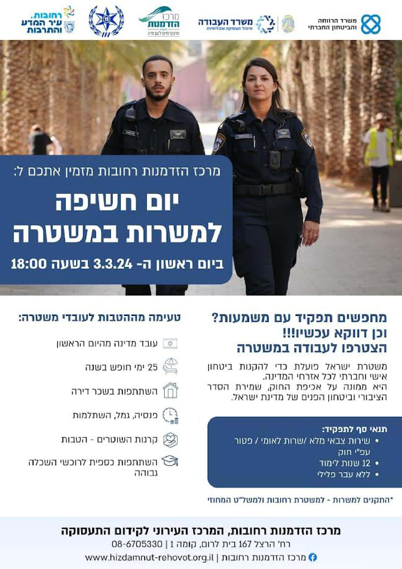 מחפשים עבודה משמעותית? מרכז התעסוקה העירוני מציג משרות נבחרות במשטרת רחובות
