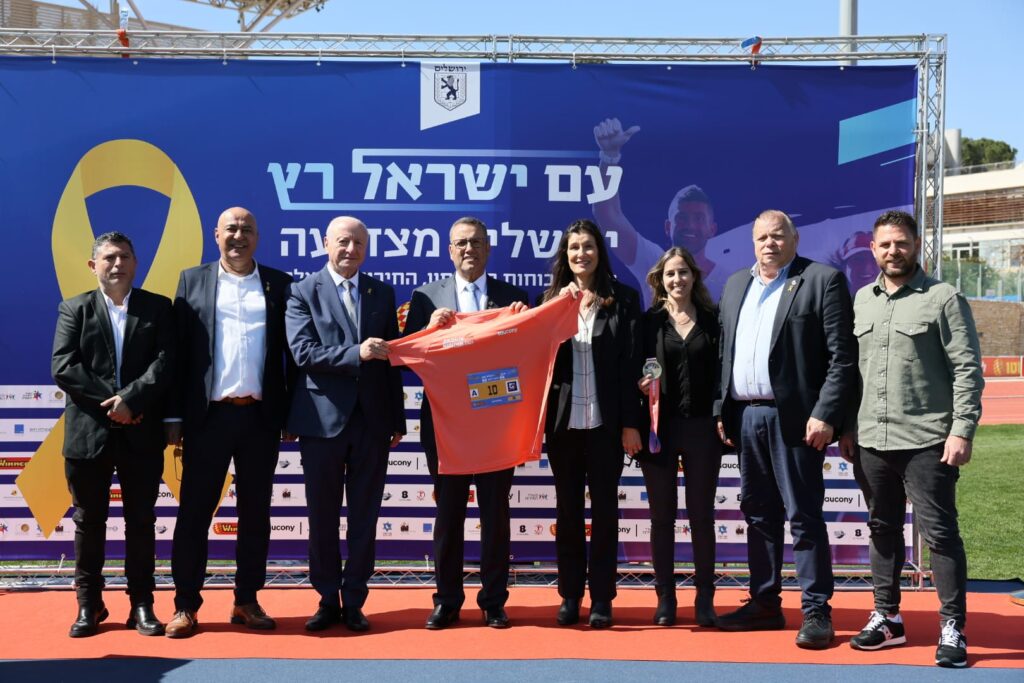 בטקס מרגש לפתיחת אירועי המרתון העניקו ראש העיר משה ליאון, מנכ"ל עיריית ירושלים איציק לארי ומנכ"ל טוטו winner מאיר ברדוגו, מגני הוקרה לקבוצות הריצה של עוטף עזה ונחשפה חולצת המרתון הרשמית