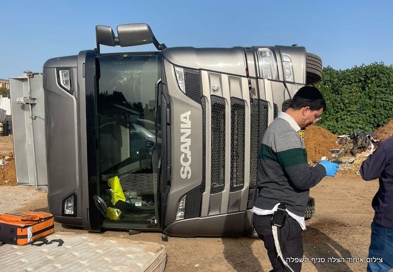 צוותי הרפואה של איחוד הצלה העניקו לפנ זמן קצר (ראשון) סיוע ראשוני לנהג משאית כבן 30 שנפצע קל עד בינוני כתוצאה מהתהפכות משאיתו ברחוב דיזנגוף בבאר יעקב.
