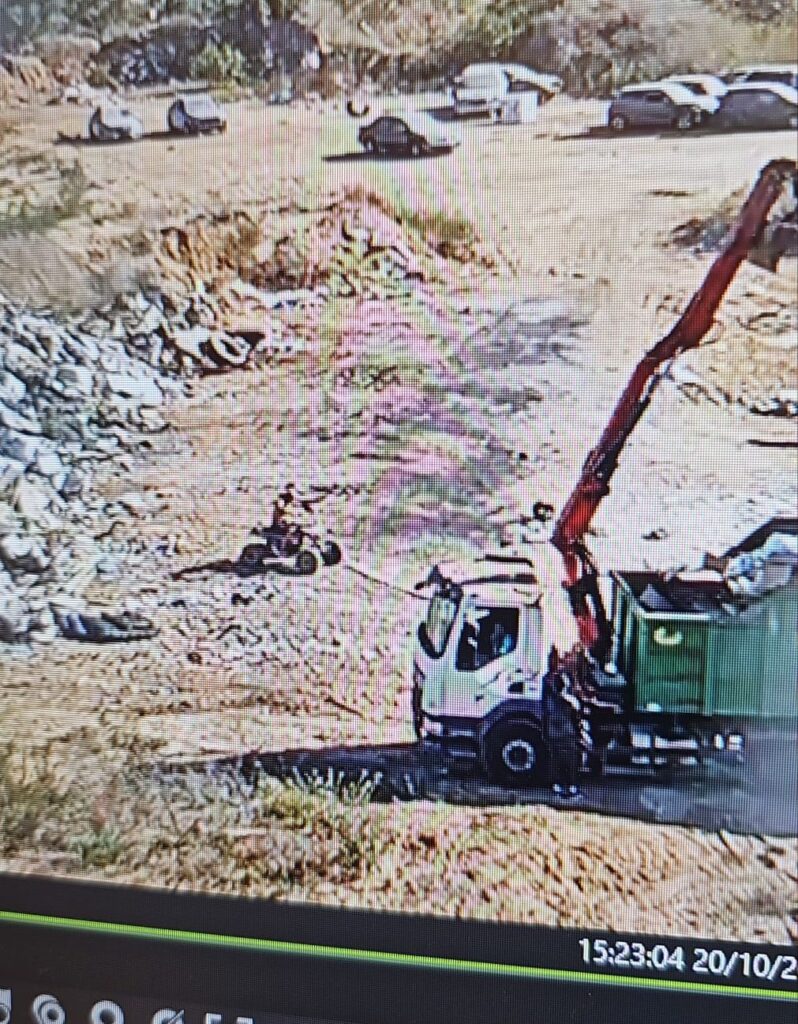 מוקד “רואה” של עיריית אשדוד זיהה ברחוב העמל 17 מקרה חמור של פגיעה בשטח ציבורי. משאית מנוף תועדה משליכה תכולה בשטח פתוח מאחורי מתחם העסקים.