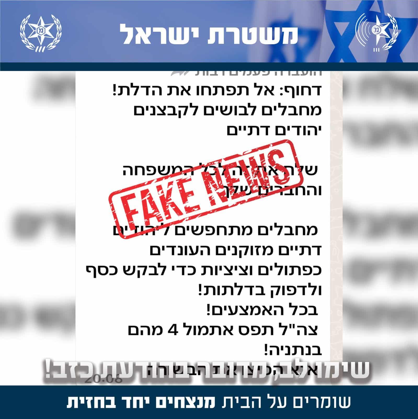 משטרת ישראל מפרסמת לפני זמן קצר אזהרה לציבור וזה לשונה: