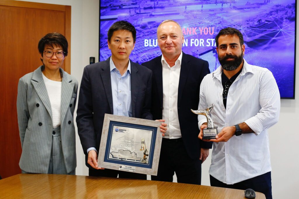 שגריר סינגפור בישראל וסגנית מנהל משלחת סינגפור בישראל ביקורו בנמל אשדוד במטרה לשתף פעולה בתחום החדשנות עם MPA סינגפור והאקסלרטור Pier 71 הנחשב למוביל בעולם בתחום ה maritime.