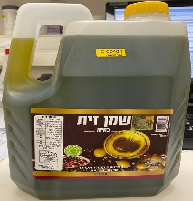 בבדיקת מעבדה שערך שירות המזון במשרד הבריאות למוצר אשר מסומן כ"שמן זית כתית", עלה חשד לנוכחות שמן אחר שאיננו שמן זית וכי המוצר אינו עומד בתקן ישראלי 191 לשמן זית.