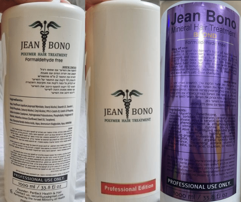 משרד הבריאות מזהיר את הציבור מצריכה ורכישה של המוצרים "JEAN BONO POLYMER HAIR TREATMENT" ו- "JEAN BONO MINERAL HAIR STRAIGHTENING BLOND" המשווקים ללא רישיון ממשרד הבריאות וללא הודעה בדבר שיווק.