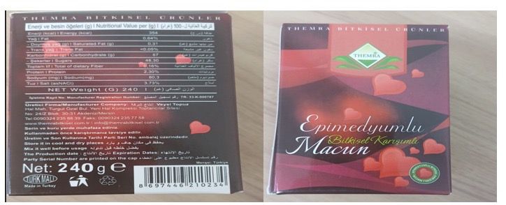 משרד הבריאות מזהיר את הציבור משימוש וצריכה של מוצרי מזון המבוססים על דבש, זאת בעקבות פעילות שנעשתה לאחרונה על ידי מפקחי שירות המזון שבמשרד הבריאות במחוז צפון. בפעילות זו נתפסו מוצרי מזון של דבש Epimedyumlu Macun מחברת Themra וממרח BITKISEL KARISIMLI MACUN Q7 GOLD. המוצרים אינם מאושרים על ידי משרד הבריאות.