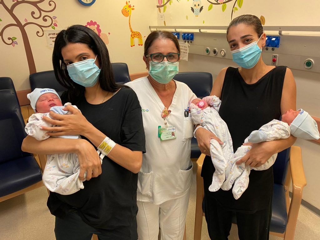 גלי, שלה יש בן (ארי, 7.5) ובת (אלה, 4.5) נוספים בבית, סיפרה כי היא הגיעה לאשפוז בבית החולים קפלן לפני כמה ימים בגלל צירים וכשהגיעה לחדר הלידה נאמר לה שגם אחותה שני נמצאת בחדר סמוך. "תארנו לעצמנו שנלד בתאריכים סמוכים אך לא האמנו שהלידות יהיו באותו הלילה", היא אומרת.