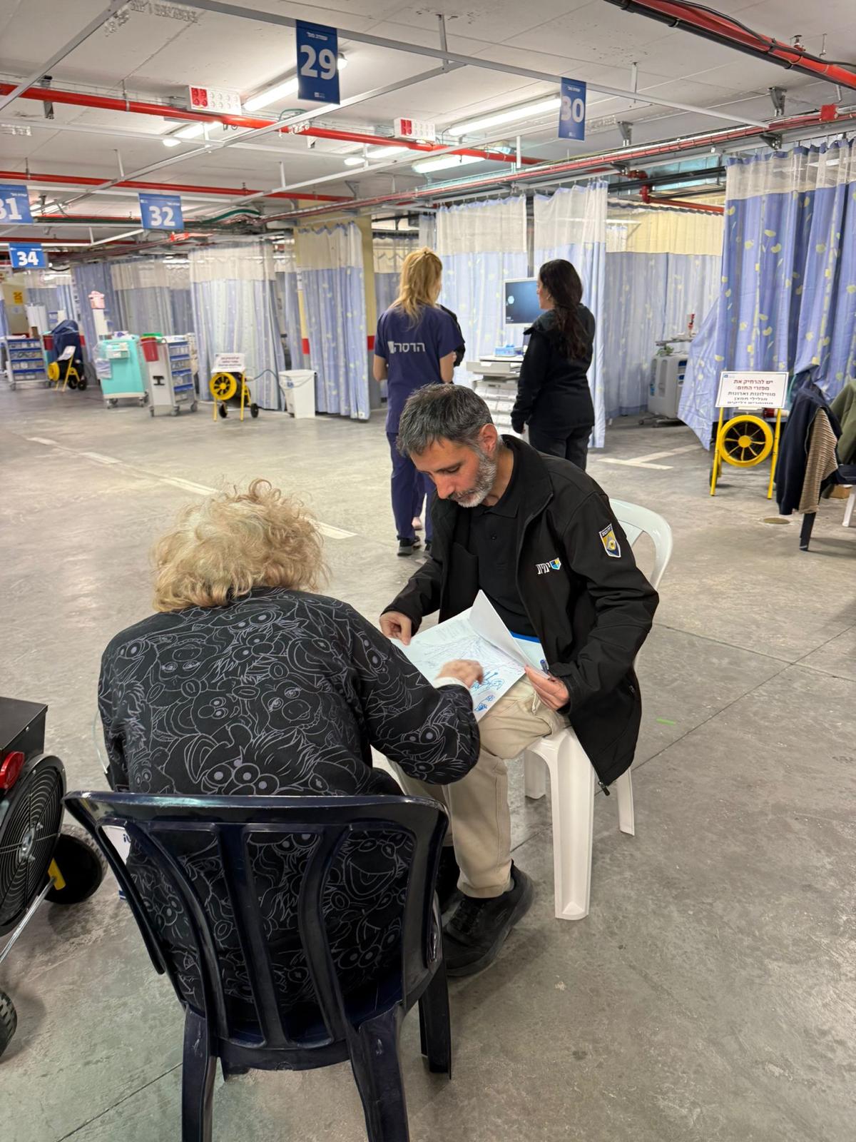 לצד הפעילות הרפואית, בהדסה מספרים גם על רגע אנושי קטן מהמתחם החדש: מג׳ד בן ה־48, שומר מטעם חברת האבטחה "ימית", הבחין באחת המטופלות כשהיא חרדה משום שבני משפחתה טרם הגיעו. הוא התיישב לצידה והחל לצייר איתה במשך זמן ממושך – עד שנרגעה.