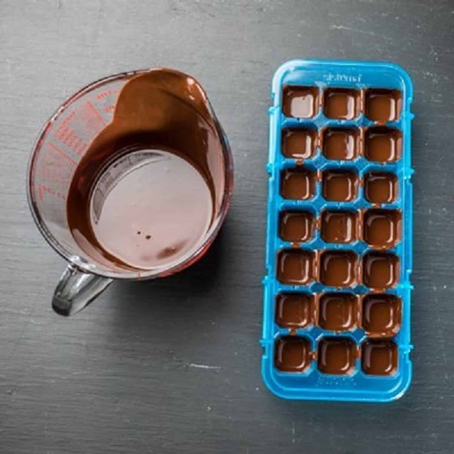 כשזה לגמרי קפוא, מוציאים את התבנית מהמקפיא ומוציאים כל טראפל מהתבנית בעדינות.