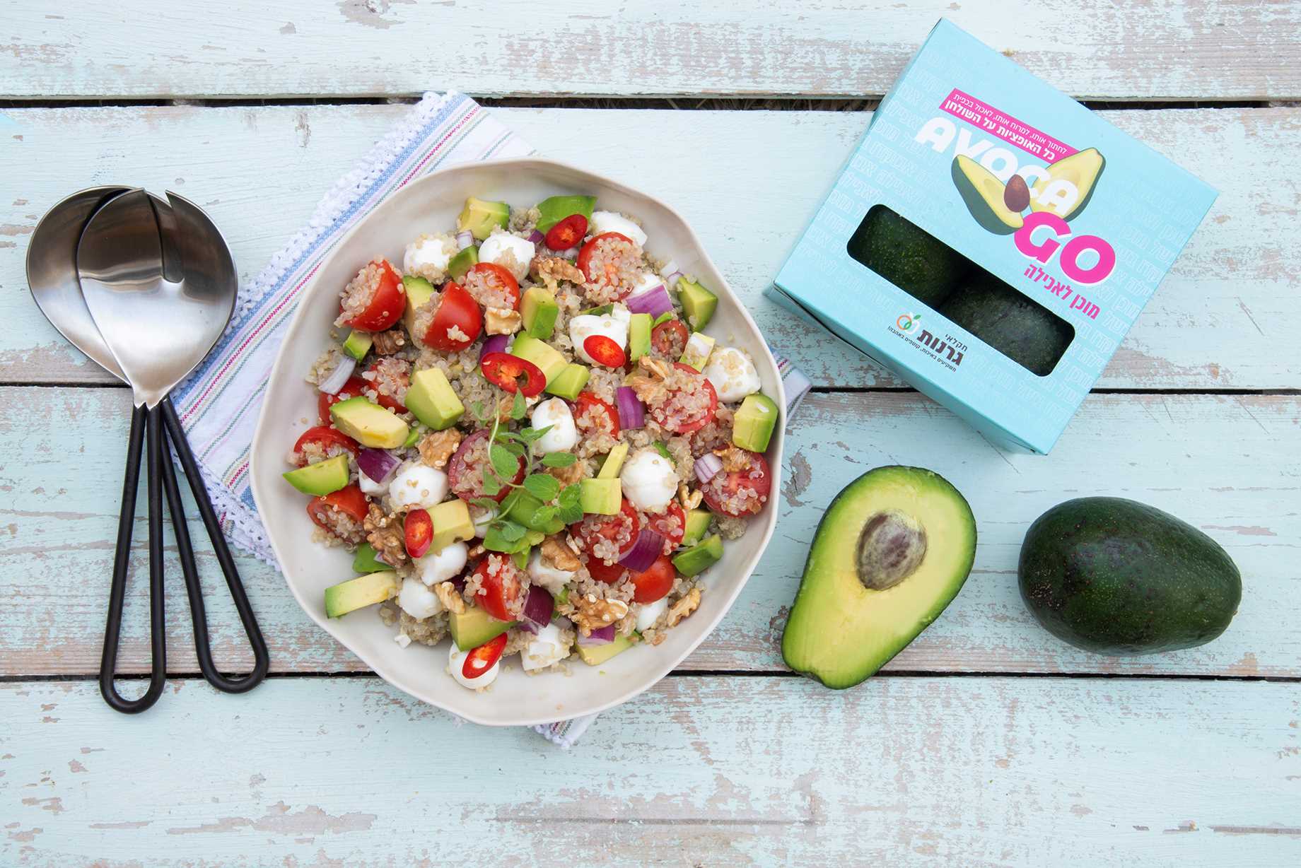 "חקלאי גרנות", מגדלת האבוקדו הגדולה בישראל ומשווקת הפירות והירקות לרשתות המזון, מגישה מתכון לסלט מזין וטעים במיוחד: סלט אבוקדו עם קינואה ומוצרלה.