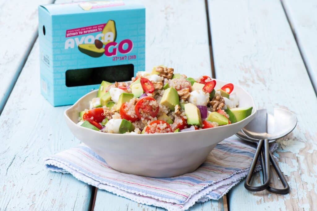 "חקלאי גרנות", מגדלת האבוקדו הגדולה בישראל ומשווקת הפירות והירקות לרשתות המזון, מגישה מתכון לסלט מזין וטעים במיוחד: סלט אבוקדו עם קינואה ומוצרלה.