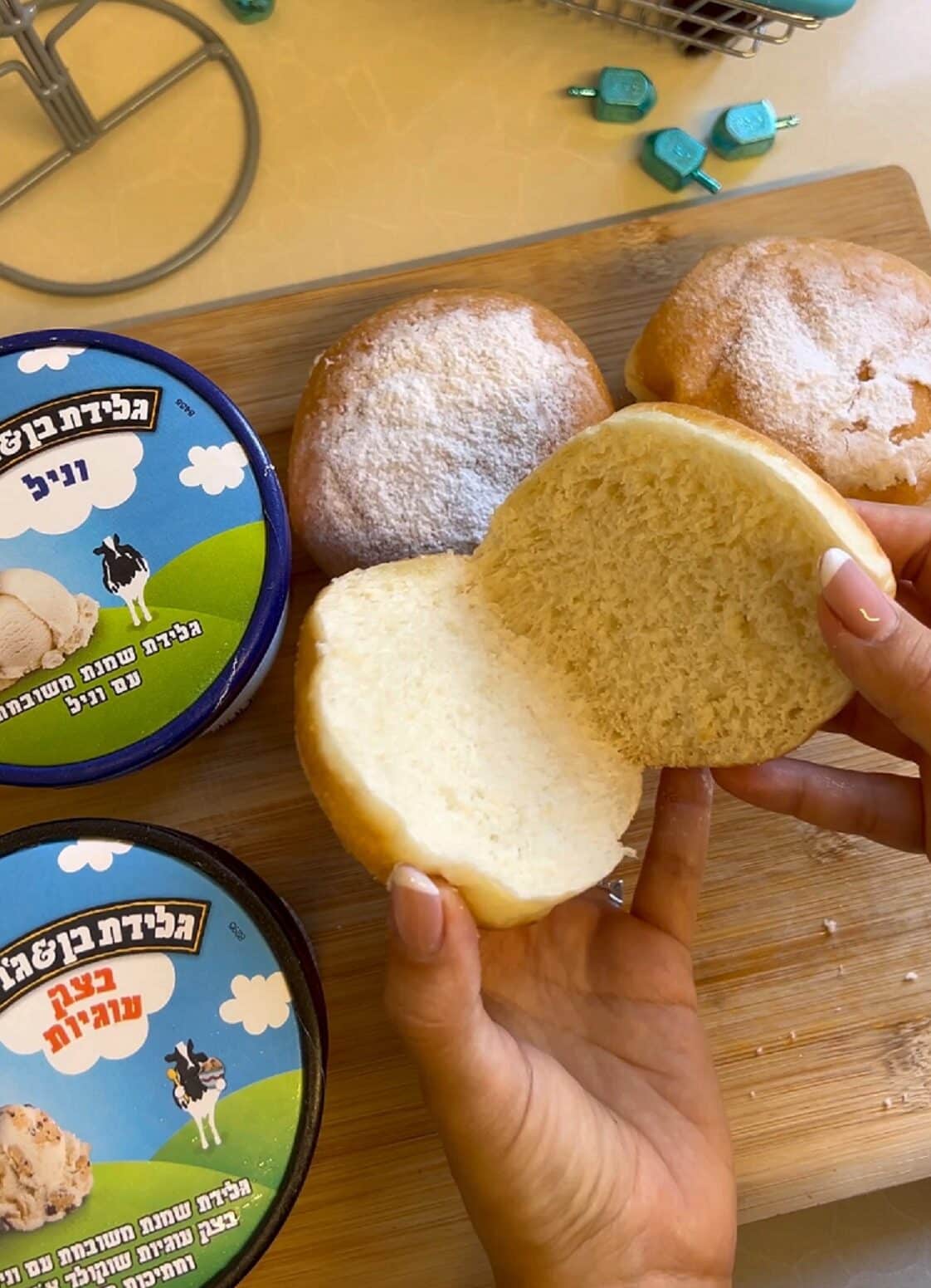 מארחים בהדלקת נרות? רוצים להפתיע את האורחים עם סופגניות מיוחדות? קבלו את המתכון החדש והמיוחד של בן &ג'ריס לחג החנוכה, עם טוויסט מעניין: סופגניית סנדוויץ' גלידה.