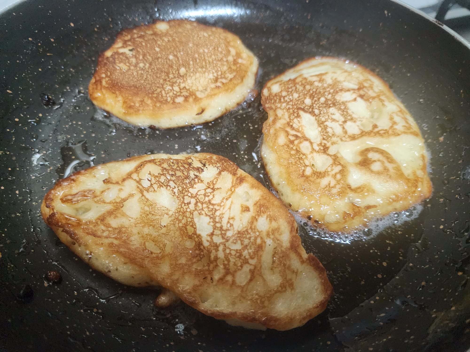 מחממים מחבת בחום גבוה, עם כפית שמן, ברגע שהשמן חם מורידים לחום בינוני ויוצקים לתוך המחבת עיגולים או אליפסות של הפנקייק (באמצעות כף). כשנוצרות בועות, זה הזמן להרים באמצעות מרית את החביתית ולהחליף צד – עד שמשחים.